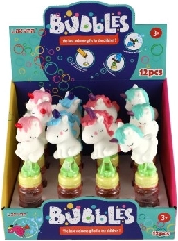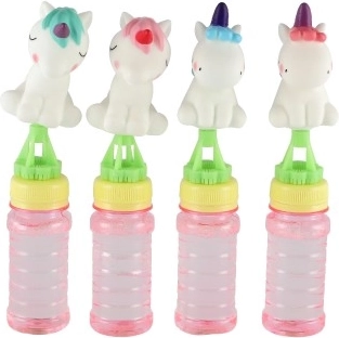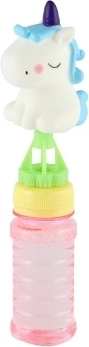 Figurina cu unicorn de pe capac transformă un simplu aparat de baloane de săpun într-o jucărie preferată. Detaliile jucăușe și culorile atrag atenția de la prima vedere.