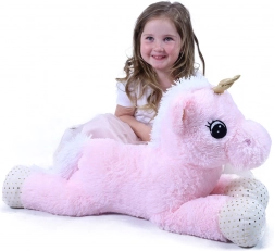 Trupul roz, coama și coada albe, copitele cu buline și cornul auriu sclipitor creează un aspect de basm pe care copiii îl adoră.