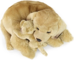 Plușul fin, de calitate, și cusăturile atente redau fidel labradorul și puiul său – ideal pentru alintat și ca decor.