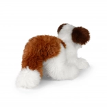 Blana alb‑maronie, detaliile atent lucrate și proporțiile fidele fac din acest shih‑tzu partenerul perfect pentru îmbrățișat și decor.