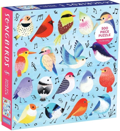 Puzzle de 500 piese cu motivul păsărilor cântătoare. Tipar de calitate, finisaj mat, materiale reciclate, cutie rezistentă și imagine-ghid. Cadou grozav.