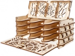 Transformă organizarea colecției tale de cărți într-o experiență plăcută. Caseta din lemn UGEARS îmbină designul funcțional, eleganța mecanică și măiestria execuției. Printr-o simplă rotire a încuietorii, caseta se deschide și se desfășoară lin într-o „scară” clară, care îți permite să găsești și să sortezi rapid cărțile.