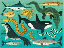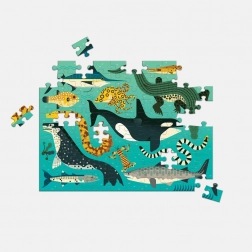 Acest puzzle captivant ilustrează pe o parte prădătorii terestri, iar pe cealaltă partea vânătorii de adâncimi marine. Fabricat dintr-un procent semnificativ de hârtie reciclată, asigură sustenabilitatea ecologică și siguranța culorilor folosite. Finisajul de suprafață este mat, ceea ce garantează reproducerea fidelă a detaliilor și culorilor, iar suprafața netedă a părții din spate împiedică acumularea prafului în timpul depozitării.