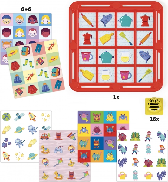 Descoperiți farmecul jocului Fantamemo cu tema albinelor de la marca Quercetti. Copiii își exersează memoria, concentrarea și spiritul de observație în timp ce caută perechile sub pălărioare. Datorită cardurilor interschimbabile cu ilustrații bogate, jocul oferă de fiecare dată o experiență nouă și nu devine plictisitor nici după multe partide.