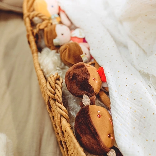 Păpușa este realizată din țesături catifelate, delicate cu pielea copilului, și respectă standardele europene de siguranță CE. Întreținerea practică facilitează utilizarea zilnică – păpușa poate fi spălată la 30 °C și uscată natural sau la temperatură scăzută. Este livrată într-o cutie cadou frumoasă, ceea ce o face o idee excelentă de cadou pentru naștere sau botez.
