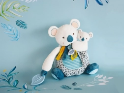 Koala de pluș Yoca cu un mic pui de koala oferă copiilor, încă din primele zile de viață, un sentiment de siguranță și o stimulare delicată. Este extrem de moale, plăcută la atingere și, datorită materialelor de calitate, ideală pentru alint și liniștire zilnică.