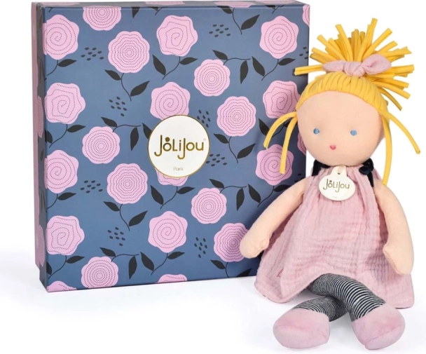 Materialele alese cu grijă – stofă, bumbac și poliester – sunt plăcute la atingere și ușor de întreținut. Păpușa este livrată într-o elegantă cutie cadou JOLIJOU PARIS, astfel încât trebuie doar oferită pentru a aduce bucurie.
