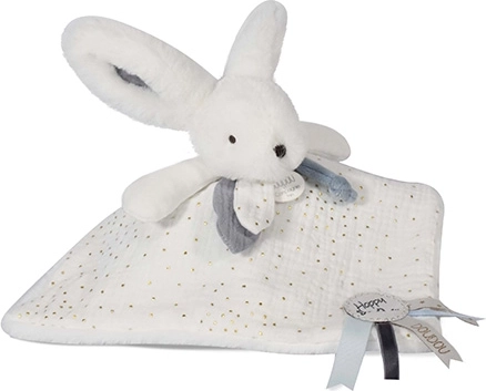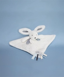 Acest iepuraș de pluș este frumos stilizat și decorat cu panglici armonios asortate, oferindu-i o notă de modernitate și lux. Prezentat într-o cutie cadou superbă, reprezintă un cadou ideal pentru nou-născuți.