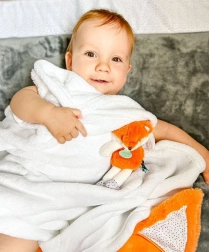 Pătura de fleece pentru copii cu jucărie de pluș Vulpițe este cadoul ideal de Crăciun sau pentru sărbătorirea nașterii unui bebeluș. Datorită materialului său de calitate premium, este plăcută la atingere și respectă standardele europene CE, asigurând astfel siguranța copilului dumneavoastră.
