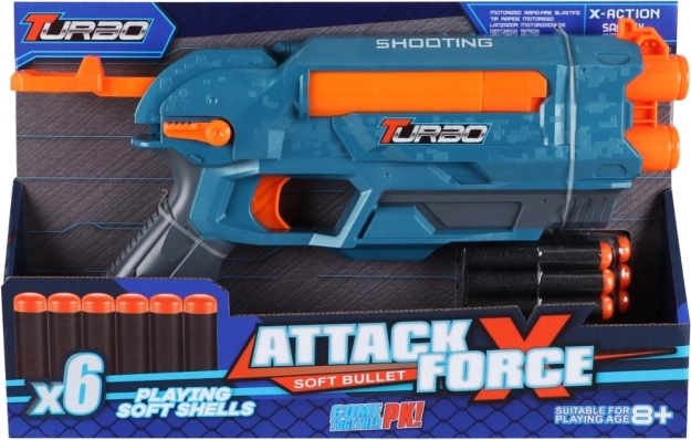 - Ambalajul include blasterul și 6 proiectile din material spumos moale.