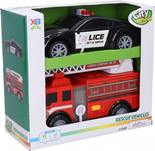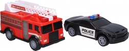 Această set de mașini de poliție și pompieri va impresiona orice copil. Perfect pentru toți cei care iubesc acțiunea și aventura. Ambele mașini au roți libere, permițând manipulare ușoară și mers rapid.