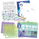 Setul include accesorii bogate pentru creații ingenioase: autocolante, șabloane, texturi și creioane colorate de calitate, cu două capete. Exemplele incluse de tehnici și baza teoriei culorilor ajută la îmbunătățirea abilităților de desen și susțin exprimarea de sine.