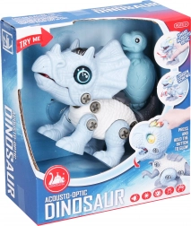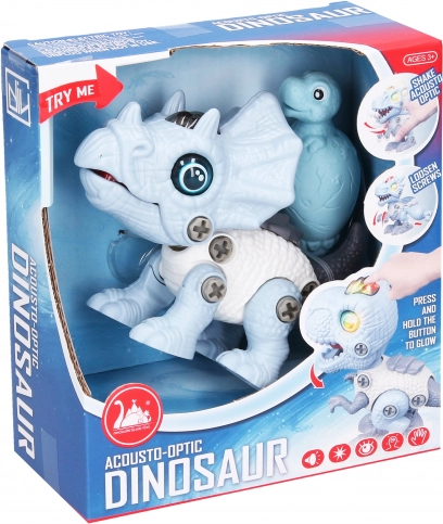 Descoperă dinozaurul distractiv pentru micii constructori: triceratops de înșurubat de 13 cm cu efecte luminoase și sonore. Datorită înșurubării simple și șurubelniței incluse, dezvoltă motricitatea fină, în timp ce efectele luminoase și sonore aduc distracție preistorică realistă. La apăsarea crestei de pe cap, deschide gura, își rotește ochii și se aprinde.