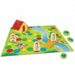 - plan de joc tridimensional, 3 figurine din lemn, zar mare din lemn, 16 jetoane cu afine, reguli