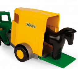 Tractor din seria Color Cars cu remorcă pentru cai. Vehiculul se remarcă prin reproducerea realistă, execuția solidă, construcția ușoară și robustă și manevrarea facilă. Setul include o remorcă ce se deschide, cu rampă rabatabilă, și o figurină cal. Tractorul are elemente mobile pentru a diversifica jocul, de exemplu cabină și capotă rabatabile și punte față direcțională. Joaca cu tractorul și remorca le va extinde celor mici cunoștințele despre lumea din jurul lor; copiii noștri vor învăța cum sunt transportate animalele și își vor transporta rapid figurinele de animale prin casă sau le vor duce într-o excursie în parc ori în grădină.