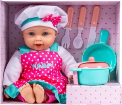 Păpușa bucătăreasă Julka aduce nu doar bucuria gătitului, ci îi învață pe copii și bazele alimentației sănătoase. Prin apăsarea butonului de pe burtică, păpușa: