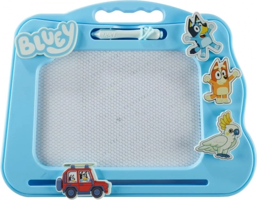 Adu această voie bună și creativitate în casa ta cu Tabla Magică a lui Bluey! Cu această jucărie vei petrece multe ore fericite desenând și pictând. Tableta este ușoară și magnetică. Setul include un stilou magnetic și 3 ștampile, ca să poți desena personajele tale preferate din desenele cu Bluey.
