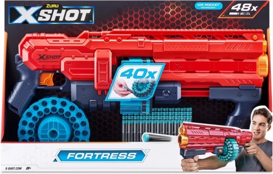 Devin-o câștigătorul fiecărei bătălii cu revoluționarul X-Shot Excel Fortress. Acest echipament de joc perfect este dotat cu un tambur încăpător ce poate găzdui până la 40 de săgeți și este proiectat pentru manevrare ușoară. Tamburul care se rotește automat și cele două niveluri pentru comutare permit joc prelungit fără nevoia de reîncărcări frecvente.