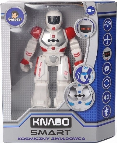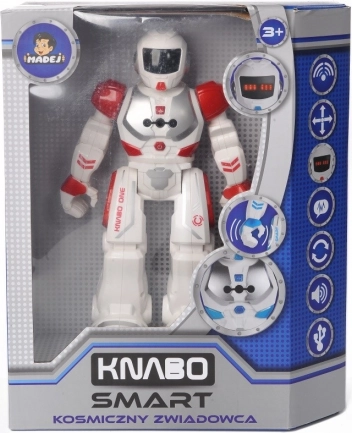 Robotul interactiv Madej Knabo Smart R/C este partenerul ideal pentru explorarea jucăușă a tehnologiei. Copiii îl pot controla cu ajutorul telecomenzii IR și al gesturilor mâinii, astfel controlul este intuitiv și distractiv. Ochii LED luminoși și sunetele robotice creează o atmosferă autentică, în timp ce funcția DEMO prezintă rapid toate abilitățile robotului.