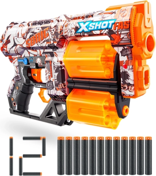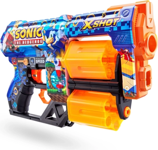 Alătură-te acțiunii cu personajele iconice Sonic, Tails și Knuckles datorită skinurilor unice X-Shot Sonic.