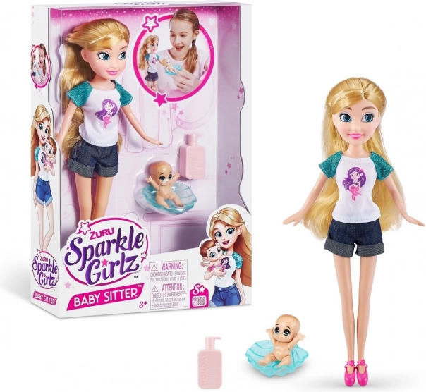 Alăturați-vă lumii magice a jocului imaginativ cu Zuru Sparkle Girlz babysitter păpușă. Această păpușă fermecătoare este pregătită de acțiune cu părul său lung blond și ținuta sa stilată. Pachetul include și un bebeluș mic și o sticlă, oferind posibilitatea de a juca diferite scenarii de babysitting. Scopul este să dezvolte creativitatea și abilitățile de îngrijire ale copilului.