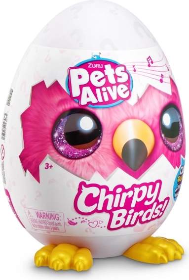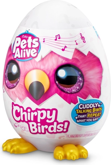 Descoperă cele mai vesele păsări de departe! Acești plușuri super moi Chirpy Birds au mereu ceva de povestit! Vorbește cu noul tău prieten vesel și, orice ai spune, te vor imita! Îți vor cânta și melodiile lor preferate, pline de veselie! Sparge oul și fă cunoștință cu noul tău prieten vesel!
