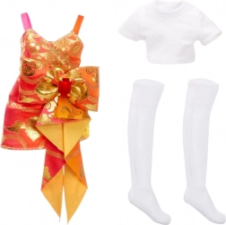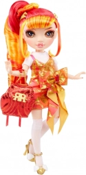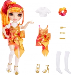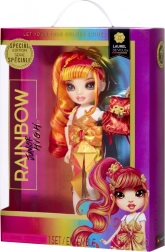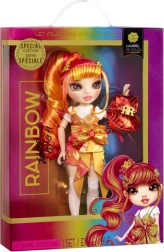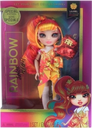 Laurel strălucește într-o combinație portocaliu‑auriu, cu detalii pronunțate care evidențiază caracterul fashion al seriei RAINBOW HIGH.