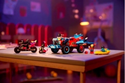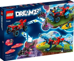 LEGO DREAMZzz Mașina-Crocodil (71458), inspirată de serialul TV, le permite copiilor să creeze construcții uimitoare și să se cufunde în aventură. Copiii se pot bucura de distracție la construit datorită posibilității de a asambla vehiculul în două moduri: fie ca mașină-crocodil cu membre mobile și lansator de discuri, fie ca vehicul off-road cu roți rotative și acoperiș detașabil.