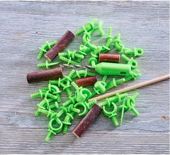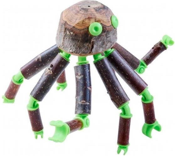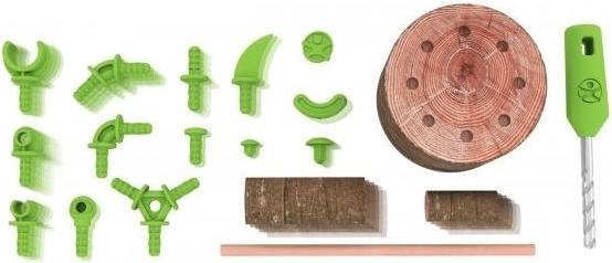 Conform instrucțiunilor, din set se pot asambla 3 modele diferite, însă posibilitățile sunt mult mai numeroase – adună mai multe crenguțe și vei obține combinații nelimitate. Datorită burghiului manual, copiii pot pregăti în siguranță găuri în lemn și le pot conecta ușor cu conectorii verzi. Joaca în aer liber sau în interior devine astfel o aventură plină de creație.