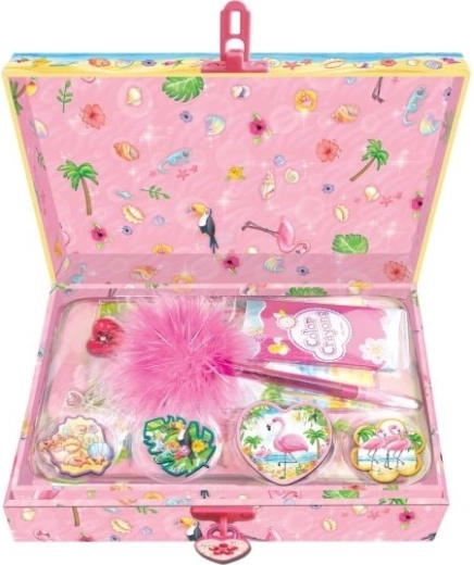 Setul este ambalat într-o cutie decorativă cu lacăt.