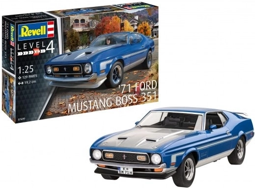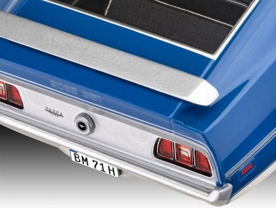 Mustang Boss 351 din 1971, cunoscut ca unul dintre cele mai legendare muscle cars, impresionează prin motorul Cleveland de 5,8 l.Kitul modelului din plastic Revell nu include vopsele și adeziv.