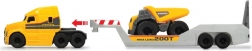 Cu acest set Micro Builder de calitate, copiii își pot organiza cu ușurință propriul șantier. Camionul MACK oferă o platformă spațioasă pentru transportul basculantei și al încărcătorului pe roți VOLVO, în timp ce rampa mobilă facilitează încărcarea și descărcarea. Datorită designului intuitiv, remorca poate fi atașată și detașată fără efort chiar și de mâinile celor mici.