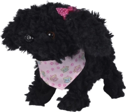 Datorită dimensiunilor compacte, cățelul este ideal atât pentru îmbrățișat, cât și pentru joaca zilnică. Eșarfa roz stilată și fundița adorabilă oferă jucăriei un aspect fermecător, atrăgător de la prima vedere.
