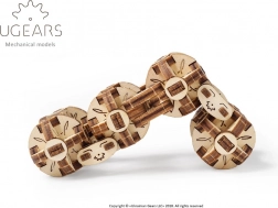 Flexi Cub de la Ugears este un model mecanic 3D unic, inspirat de steampunk. Opt balamale sferice interconectate permit îndoire și răsucire fluide, astfel încât creezi ușor forme geometrice variate – de la dreptunghi până la un cub 3D compact. Fiecare bilă este un mini-mecanism format din șase segmente unite prin articulații mobile.