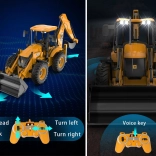 Încărcător/buldozer RC de construcții realist la scară 1:20, inspirat de utilajele JCB, oferă multă distracție atât acasă, cât și în aer liber. Controlul pe 2,4 GHz asigură mers lin înainte/înapoi și viraj stânga/dreapta. Ridică și coboară de la distanță lama frontală, are lumină în cabină și sunete realiste de motor. Banda de rulare din cauciuc a roților îmbunătățește aderența și stabilitatea pe diverse suprafețe.