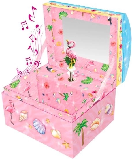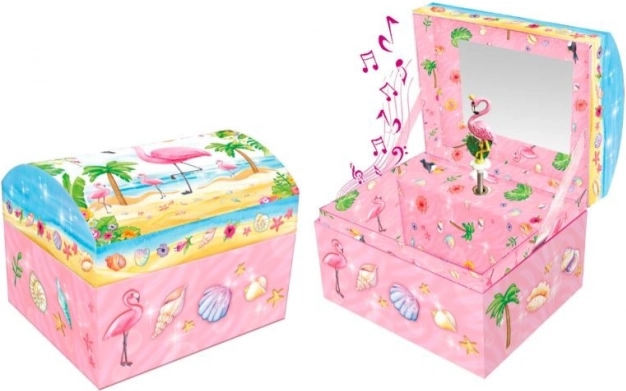 Cutie muzicală Pecoware cu motiv de flamingo aduce o melodie clasică, pe care o activați printr-o simplă rotație și dezvăluie un spațiu de depozitare pentru mici comori.