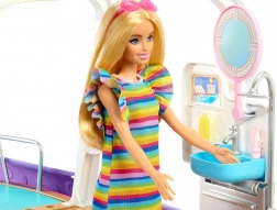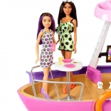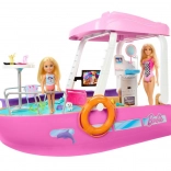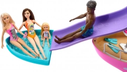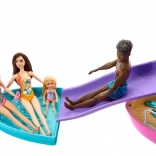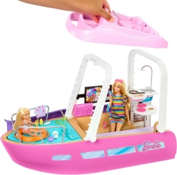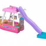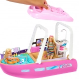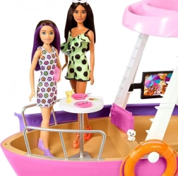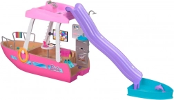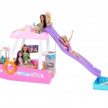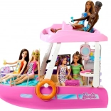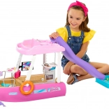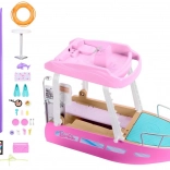 Această barcă stilată, cu dimensiuni de aproximativ 91 cm lățime și 30 cm înălțime, oferă mult spațiu pentru păpuși și prietenii lor. Copiii pot conduce barca pe puntea superioară, se pot relaxa la soare și pot aluneca pe toboganul mov direct în piscina albastră. Etajul superior detașabil dezvăluie un interior detaliat pentru joacă ușoară.