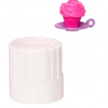 O brioșă roz adorabilă pe o farfurie face parte din set și se potrivește perfect în mâna lui Barbie, îmbogățind jocul.