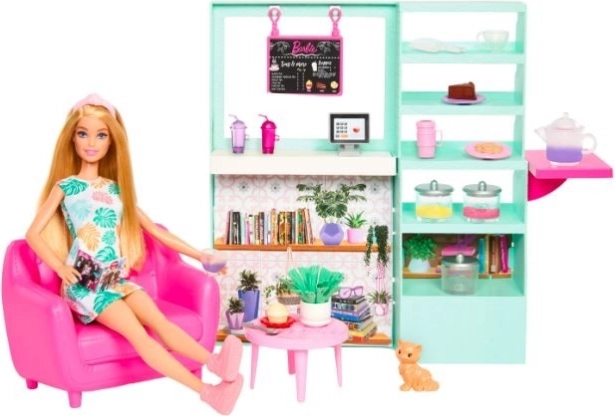 Joacă-te de-a cafeneaua cu Barbie, care poartă în set rochii stilate cu motive decorative de frunze. Compania îți va fi ținută de o mică figurină pisică, care adaugă un strop de magie întregii scene. Schimbarea culorii sau a gustului în cadrul jocului este ușoară grație ceainicilor magici.< /p>< /div>