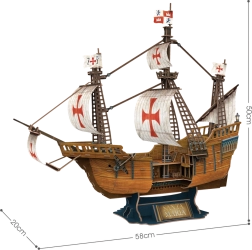 Construiește o frumoasă replică a navei Santa Maria cu acest set puzzle 3D de la renumitul brand CubicFun. Producția pieselor dintr-un material specific de 3mm grosime asigură rezistența și ușurința în utilizare. Învelișul din hârtie laminată imprimată oferă modelului un aspect realist și îi sporește durabilitatea. Modelele nu sunt doar distractive de asamblat, ci devin și un frumos element decorativ în interiorul tău.