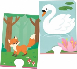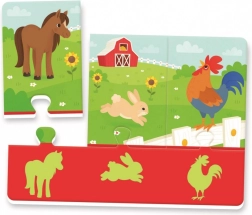 Puzzle-ul Animale și umbrele lor este o jucărie creată pentru a-i familiariza pe copii cu lumea animalelor. Materialele incluse le permit să exploreze lumea prin observarea imaginilor și prin explorare tactilă. În plus, îi ajută pe copii să își dezvolte în mod natural abilitățile de gândire logică și să exerseze concentrarea, memoria și atenția.