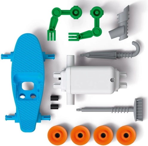 - motor cu cutie de viteze și modul de baterie, piese robot, autocolante colorate, manual de instrucțiuni