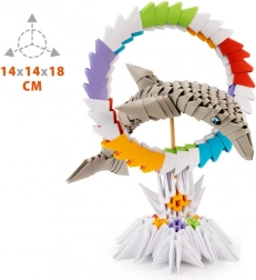 Setul complet conține 343 piese de hârtie de calitate pentru asamblarea unui delfin 3D impresionant – fără a fi nevoie de lipici.