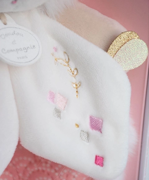 Iepurașul de pluș este proiectat să fie moale și plăcut la atingere, ceea ce îl face un companion ideal pentru cei mai mici. Iepurașul are o culoare bej atrăgătoare cu un abdomen roz, ceea ce îi oferă un aspect adorabil. Este oferit într-o cutie cadou elegantă, care este în sine o mică operă de artă, făcându-l ideal pentru a fi oferit cadou.