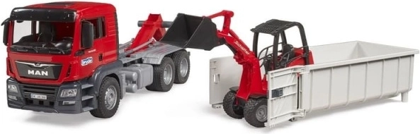 Acest set Bruder este un instrument ideal pentru orice mic constructor care dorește să imite lucrările reale de construcții chiar în camera lui de joacă. Camionul MAN TGS este cunoscut pentru versatilitatea sa datorită construcției durabile și motoarelor puternice. Cabina bicoloră cu uși deschizabile oferă un loc de muncă modern pentru figurinele de joc.