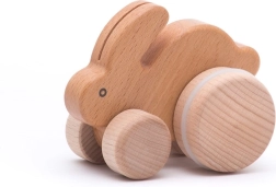Descoperă iepurașul din lemn care stimulează imaginația copiilor! Această jucărie este concepută pentru a dezvolta abilitățile motorii brute și manuale ale micuților, fiind sigură și prietenoasă cu mediul. Fără niciun mecanism complex, iepurașul poate fi împins ușor pentru a începe să sară, captând atenția și spiritul de joacă al copiilor.