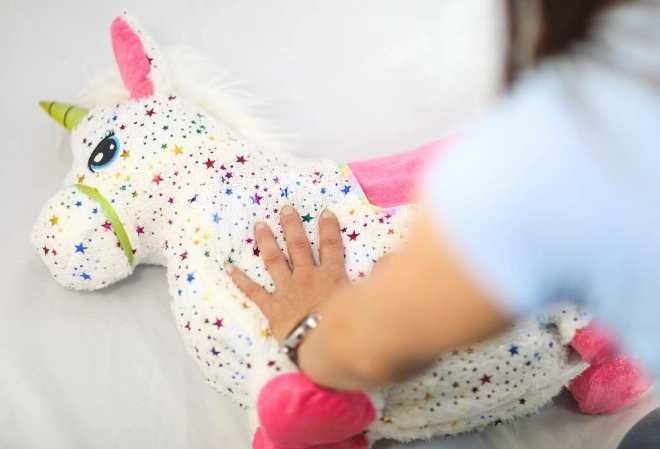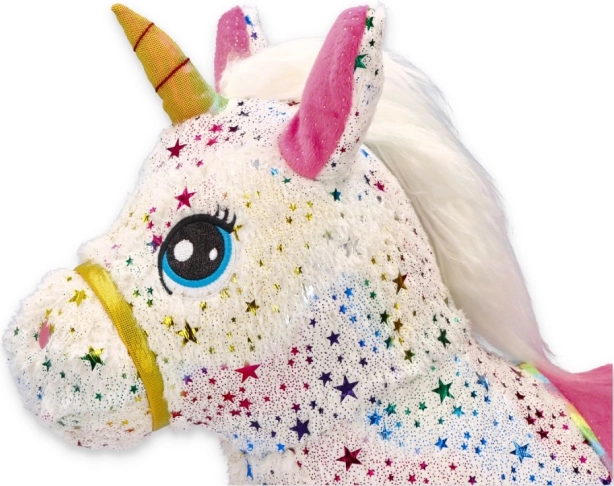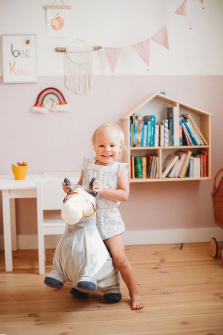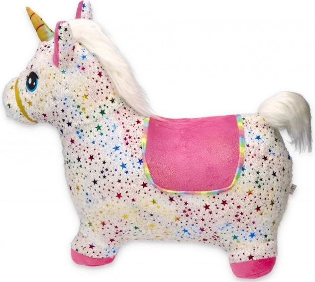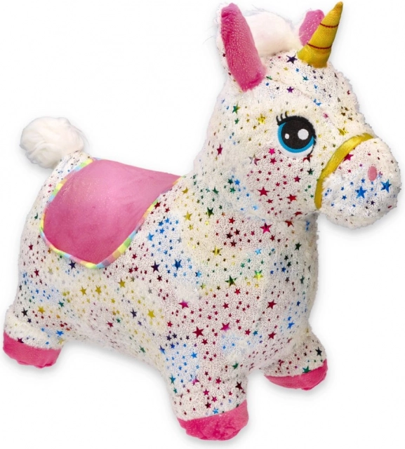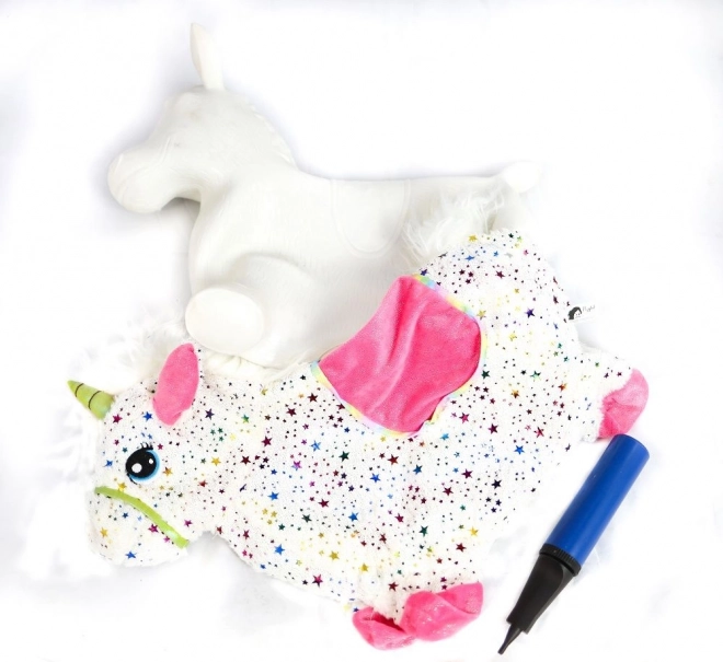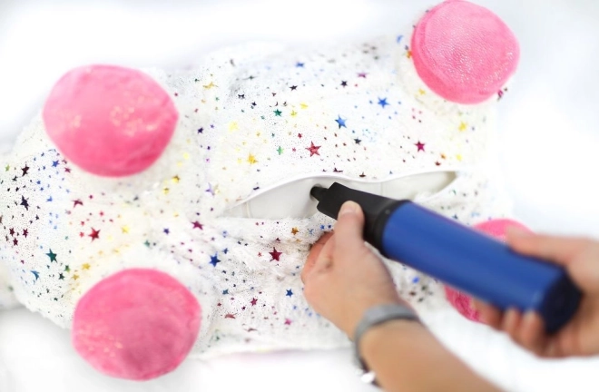 Unicornul săltăreț se umflă ușor cu pompa manuală inclusă. Gata de joacă în câteva clipe – miez elastic, prindere confortabilă și dimensiuni 60 × 50 × 25 cm.