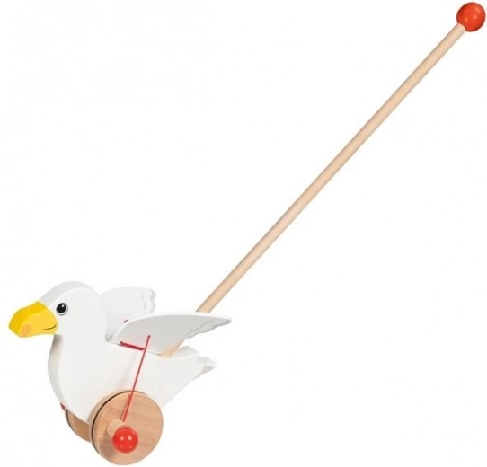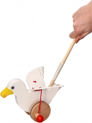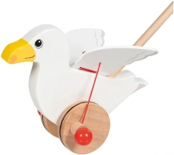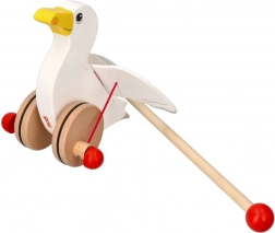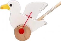 Jucăria de împins din lemn Pescărușul Jonas, adorabilă, îi motivează pe copii să pășească – în mers își mișcă aripile, iar roțile cu benzi din cauciuc protejează pardoseala. Ideală pentru dezvoltarea motricității grosiere și a echilibrului la copiii de la 18 luni.