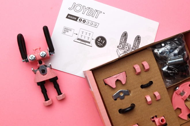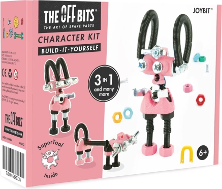 JoyBit din colecția THE OFFBITS este un set de construcție jucăuș care transformă șuruburile și piulițele obișnuite în figurine robotice pline de personalitate. Dintr-un singur set asamblați cel puțin 3 modele (de ex. JoyBit, AstroBit sau un animăluț), iar datorită combinației de piese din plastic și metal și instrumentului inclus SuperTool vor prinde viață și propriile voastre invenții originale.