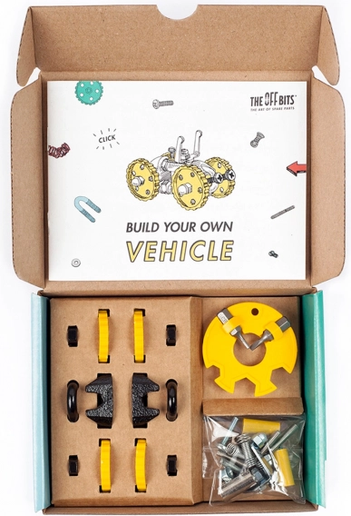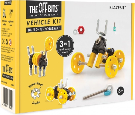 OFFBITS BlazeBit este un set de construcție original, inspirat de cultura reutilizării, care transformă șuruburi, rotițe și conectori inteligenți în modele mobile. Construiește BlazeBit, MotorBit, AnimalBit sau imaginează-ți propria mașinărie – imaginația nu are limite.